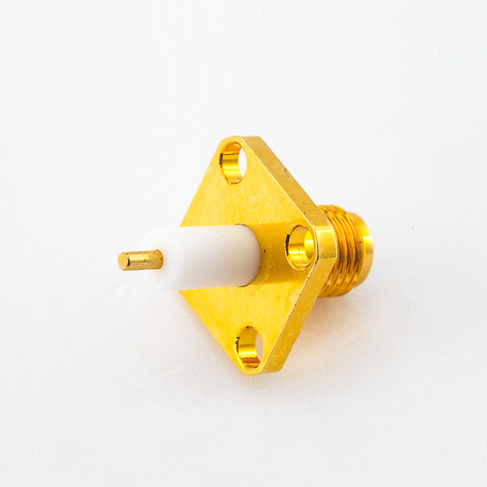PCB安裝焊板SMA連接器母頭直式4孔法蘭