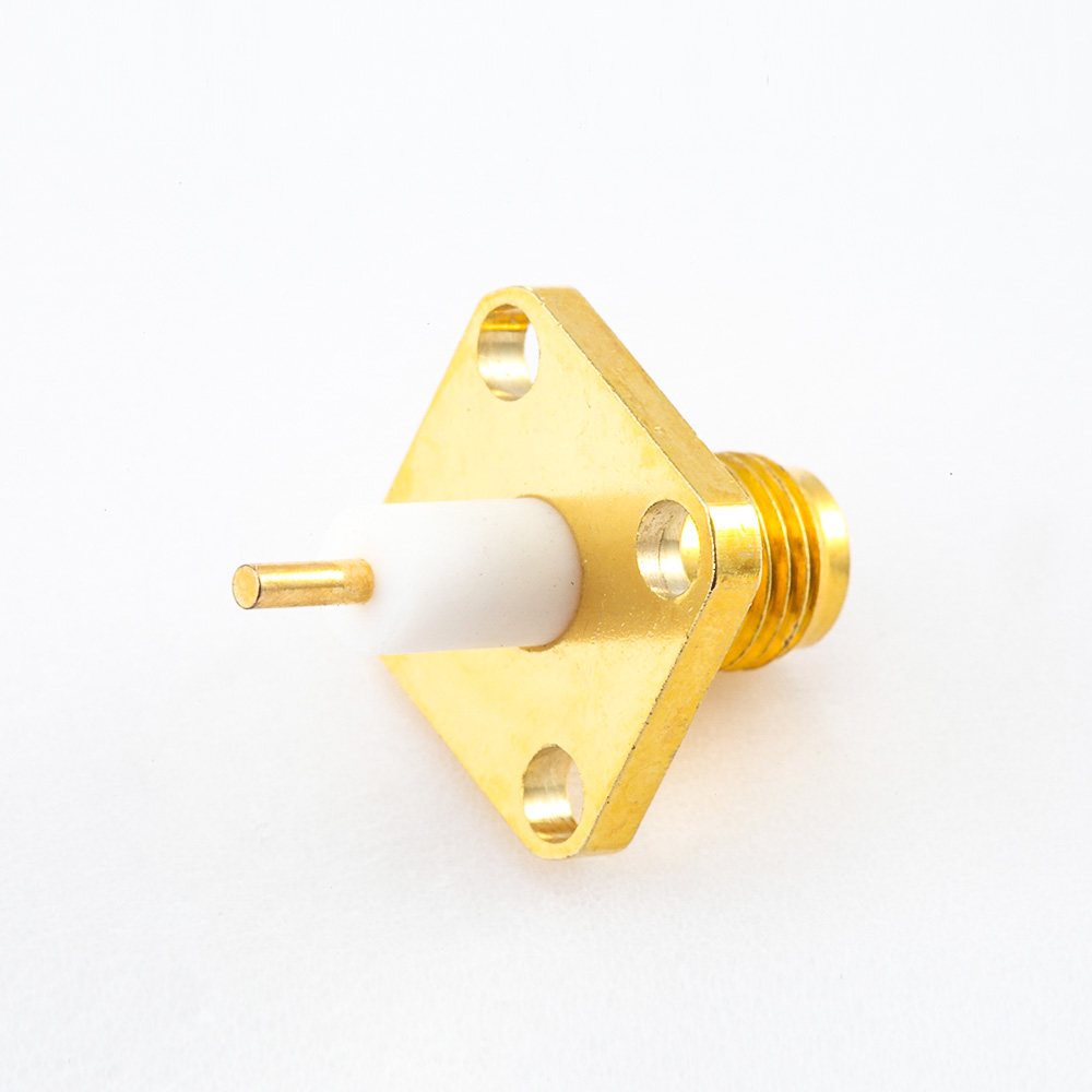 焊板SMA連接器PCB安裝母頭直式4孔法蘭