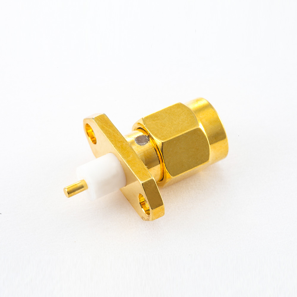 面板安裝SMA公頭連接器直式PCB安裝焊板2孔法蘭