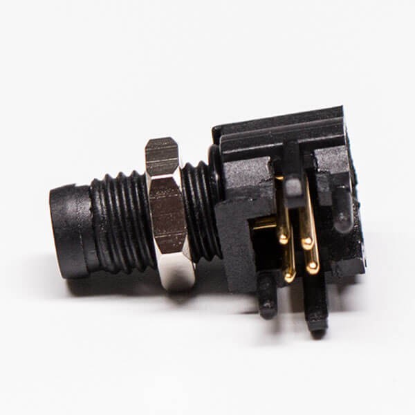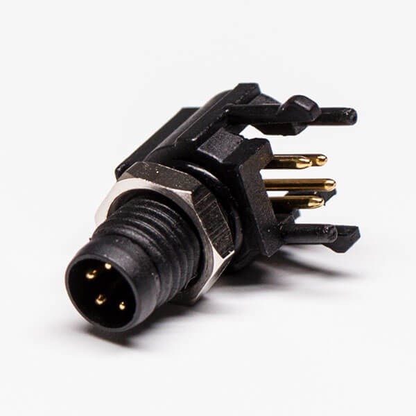 料號:EB-400-1054 標簽:M8, 4芯, A編碼, 板端插座, 公, 前鎖板, 彎的, 插板, 不帶屏蔽