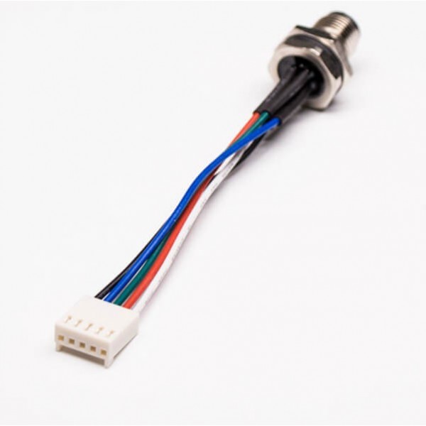料號:EB-400-1110 標簽:M8,B編碼,5芯,板端插座,公,直頭,線材,焊接式,前鎖板,帶屏蔽,防水,24AWG,50CM