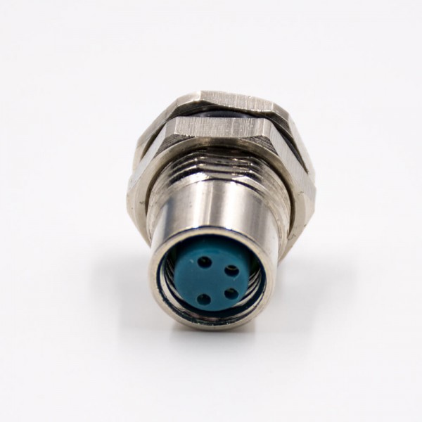 M8連接器4芯母頭直式前鎖板板端插座接線焊接式傳感器