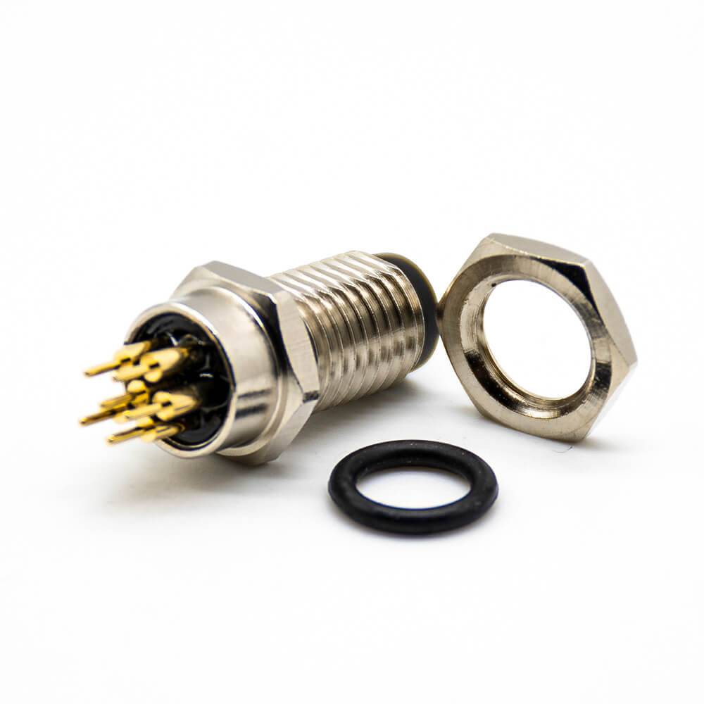 料號(hào):EB-400-1259 標(biāo)簽:M8板端插座,A扣,180°,6芯,公頭,接PCB板,焊接式,前鎖板,防水