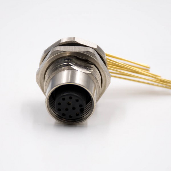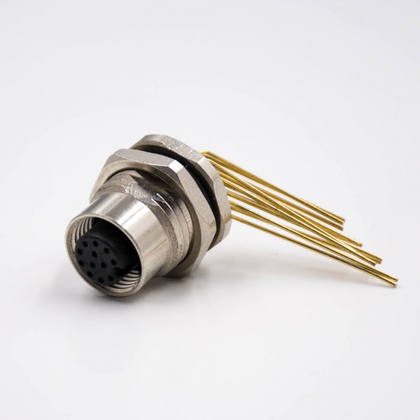 料號:EB-400-2289 標簽:M12板端插座,A扣,彎式,12芯,母頭,前鎖板,接PCB板,防水