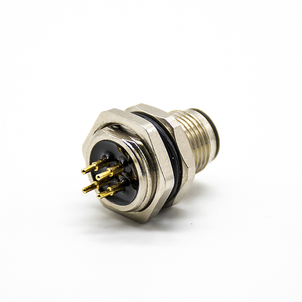 M12 4芯航空頭后鎖板防水直式A扣板端插座公頭焊接式接PCB板