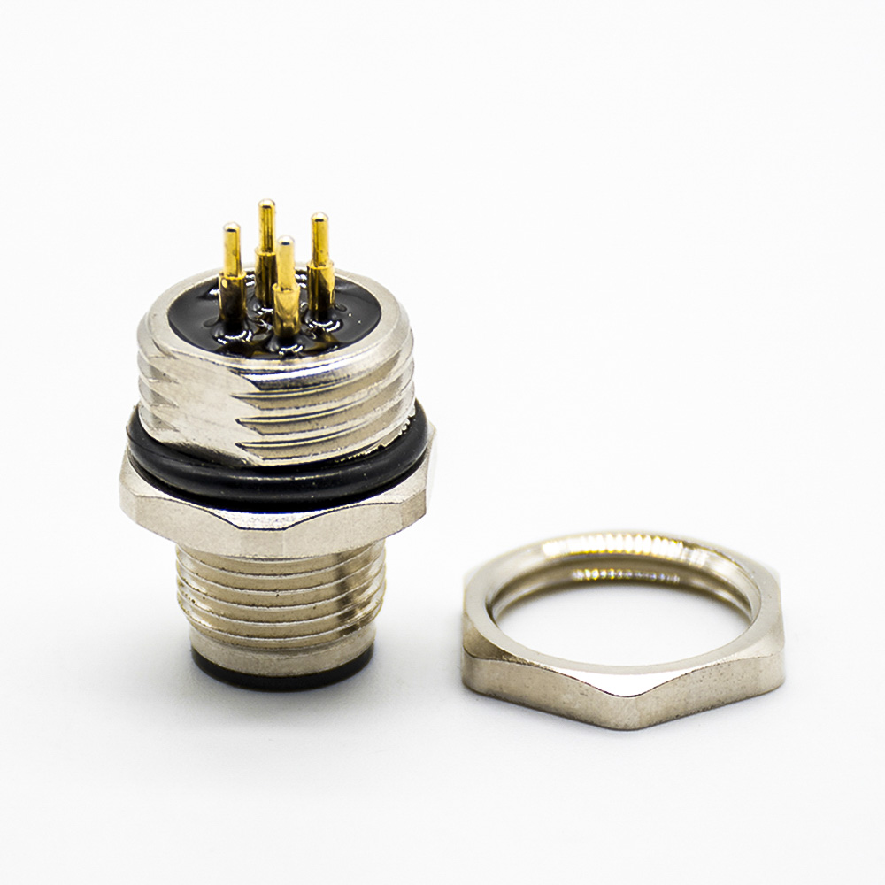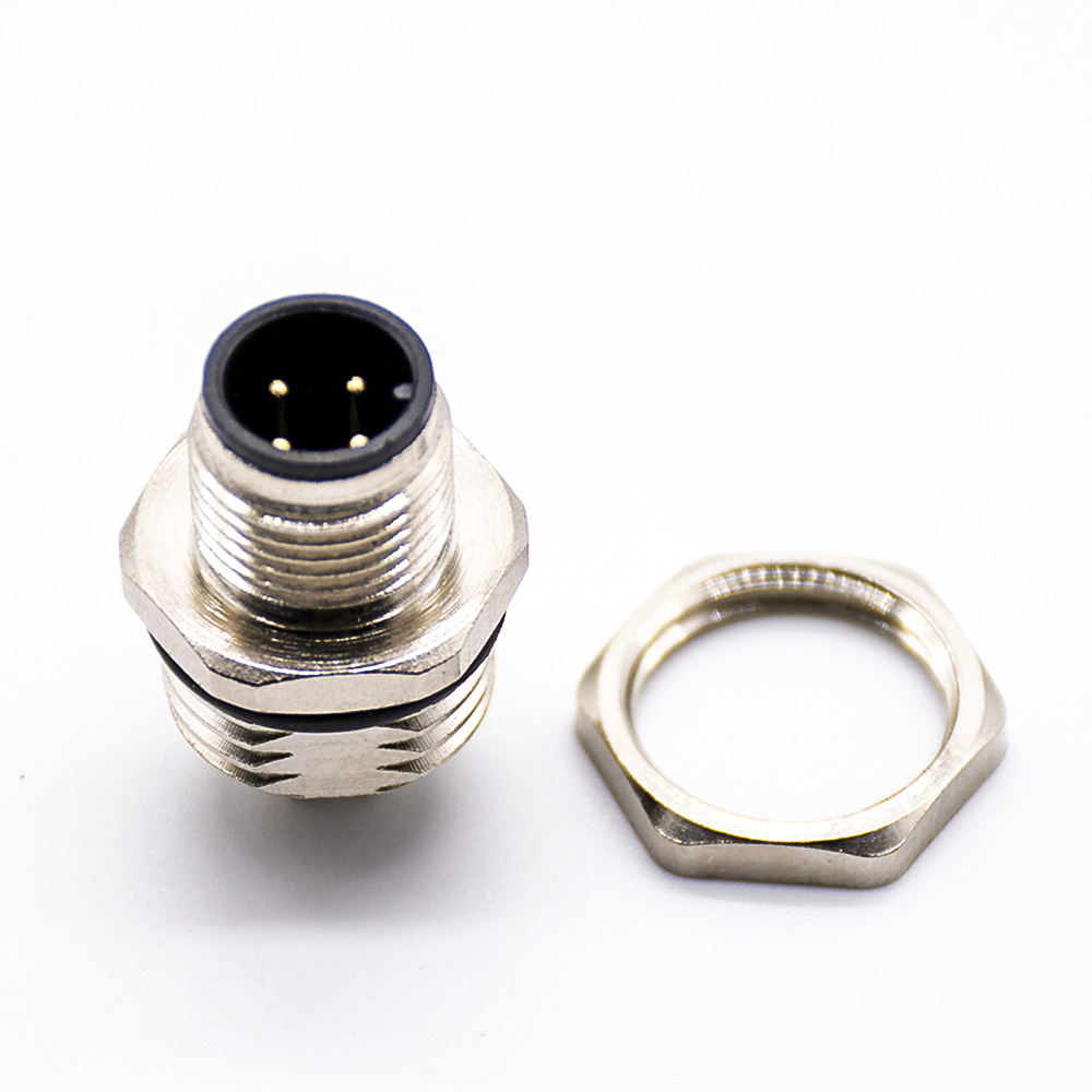 標簽:M12板端插座,A扣,180°,4芯,公頭,接PCB板,焊接式,后鎖板,防水