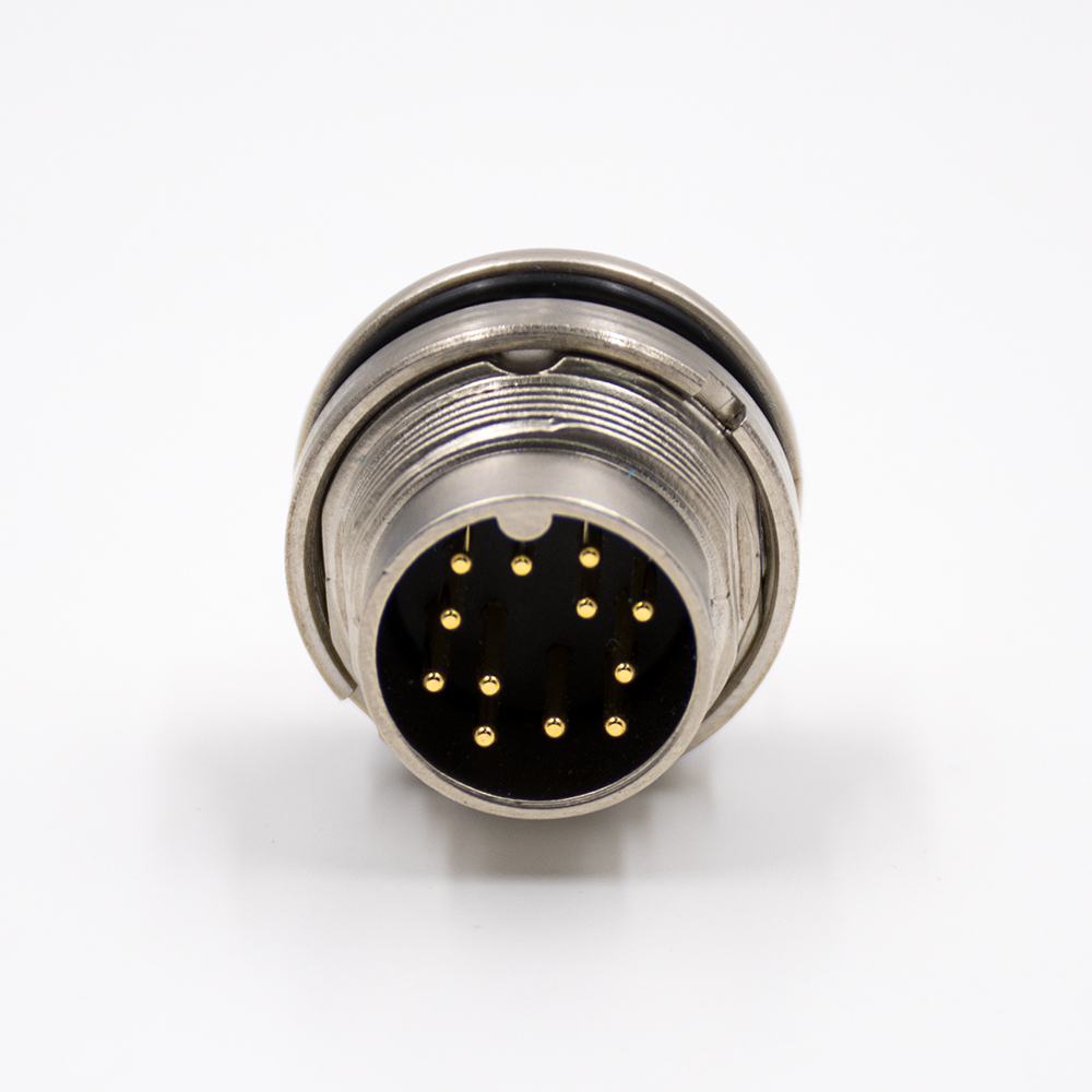 M16穿墻端插座A扣12芯公頭直式前鎖板接PCB板傳感器連接器