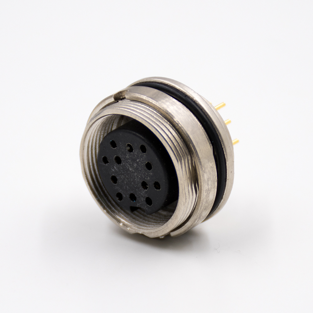 插座母頭M16板端插座A扣12芯直式前鎖板接PCB板傳感器連接器
