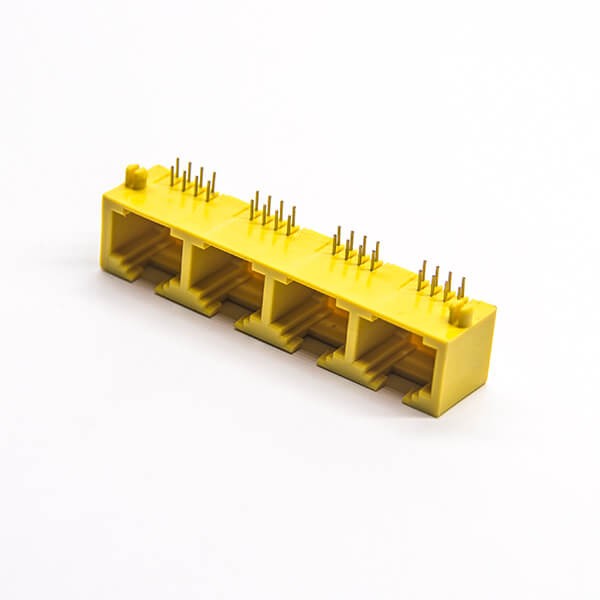 標(biāo)簽:RJ45插座,8P8C,4端口,1*4,彎式90°,觸頭鍍金,插板,PCB板安裝,非屏蔽,不帶燈,不帶濾波