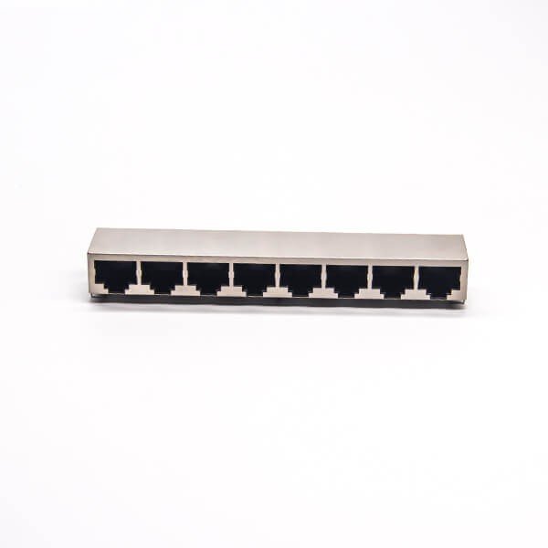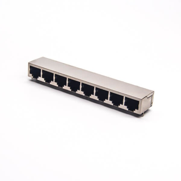 標簽:RJ45插座,8P8C,8端口,1*8,彎式90°,觸頭鍍金,插孔,PCB板安裝,帶屏蔽,不帶燈,不帶濾波