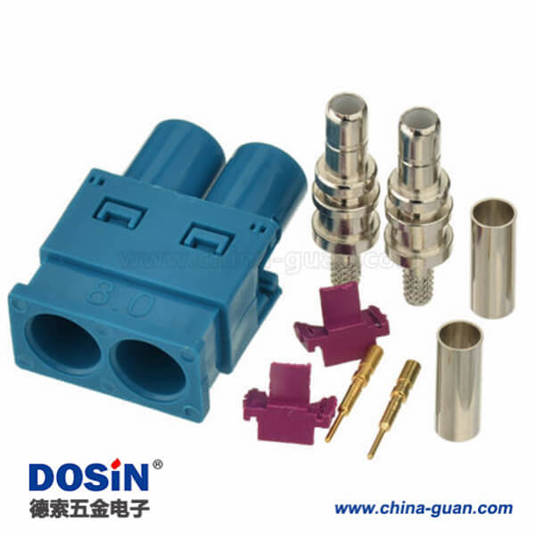 Fakra同軸連接器Z型雙頭公頭水藍色焊接汽車天線接線RG316 RG174連接器