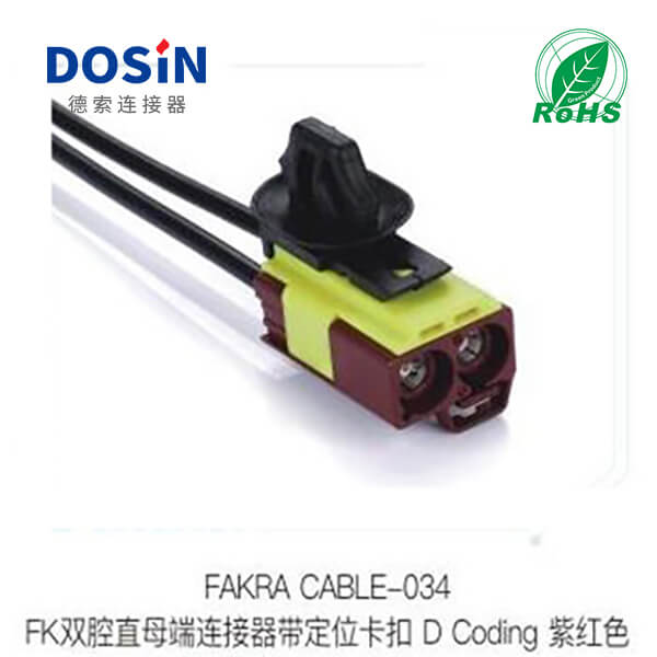 Fakra雙腔直母端連接器帶定位卡扣D-Coding紫紅色定制打樣