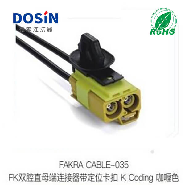 Fakra雙腔直母端連接器帶定位卡扣K-Coding咖喱色定制打樣