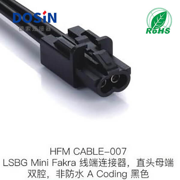 LSBG-Mini-Fakra線端連接器直頭母端雙腔非防水A-Coding黑色生產工廠