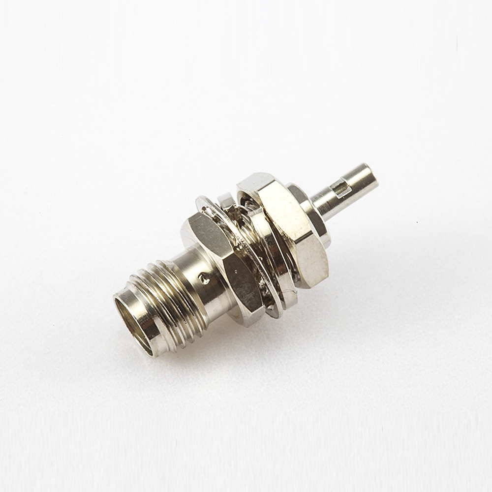 SMA連接器母頭直式面板安裝前鎖穿墻鎳鍍層開天窗焊接式用于1.13MM接線