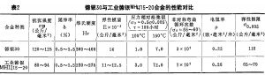 1.德銀30合金。不久前,蘇聯提出了一種改良型德銀:德銀30合金。其成分為:Ni13.5-16.5%, Zn28-32%, Sip.2-0.4%,Cu余量,是取代工業德銀的理想材料。兩者的性能對比見表2。