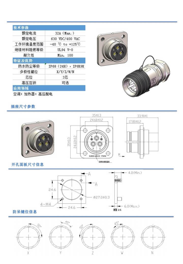 標(biāo)簽:XL403,32A,三芯,金屬,XL403系列,32A高壓插頭, 32A高壓插座